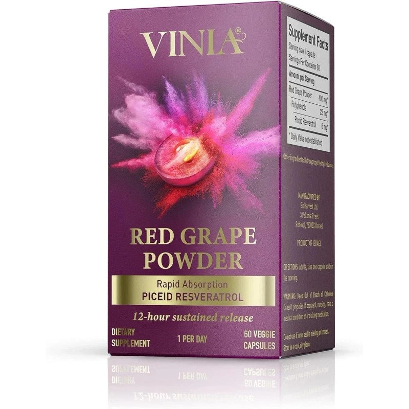 Branded Vinia Red Grape Powder Rapid Absorbtion Piceid Resveratrol 60 Capsule...