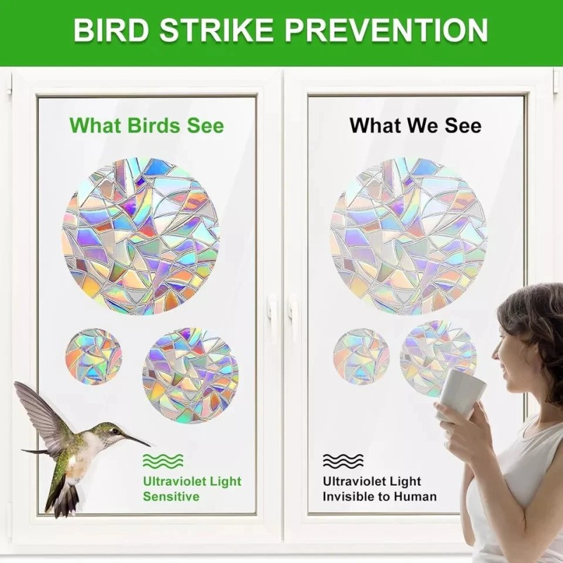 - Birds Strikes Prevention: Window decals reflect sunlight that birds take as alerts to stop bird strikes. They can be applied to your home, bedroom, balcony, office windows, and any glass doors as bird deflectors for windows or decals for bird strikes