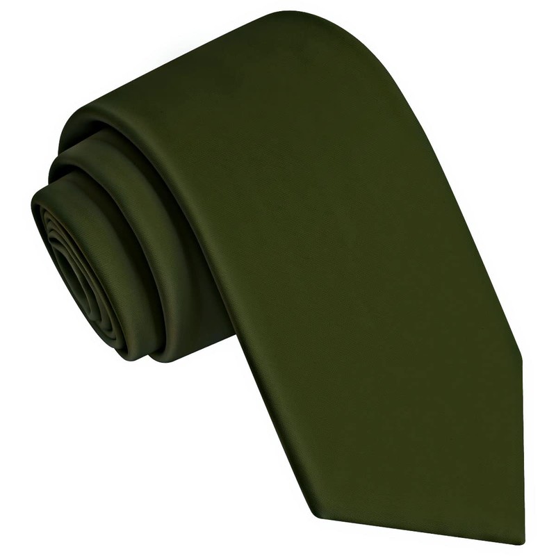 Branduce Silk Olive Green Tie Classic Wedding Necktie Solid Pure Plain Formal Tie for Men (TA05-24)