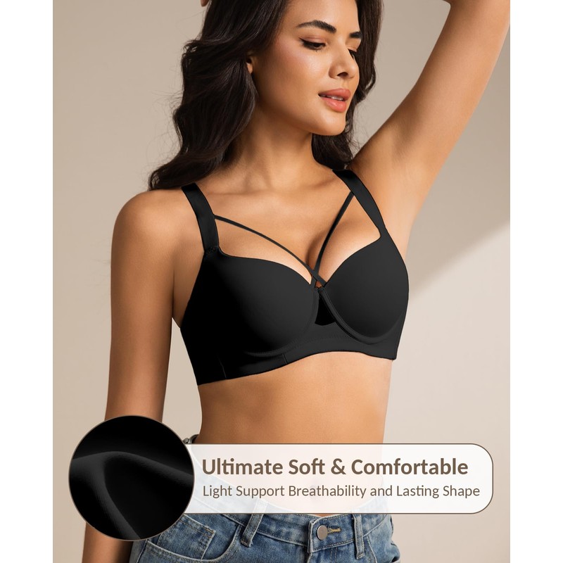 Bras for Women, Criss Cross Bra Underwire Push Up, Everyday Tshirt Comfortable Bras Seamless, Full Coverage Bralette with Support and Lift(Black,Large)