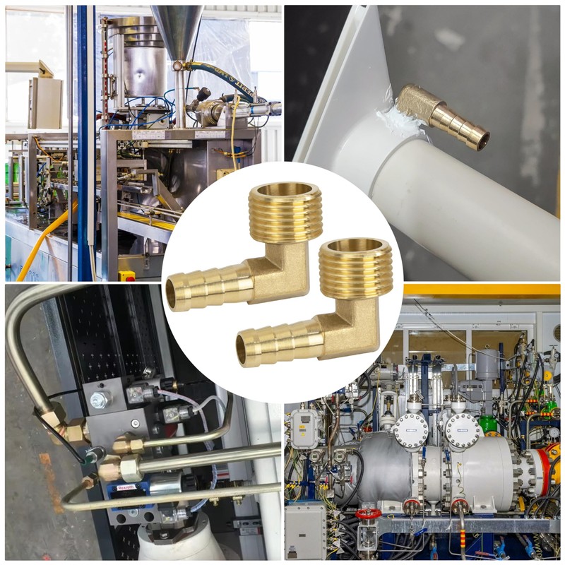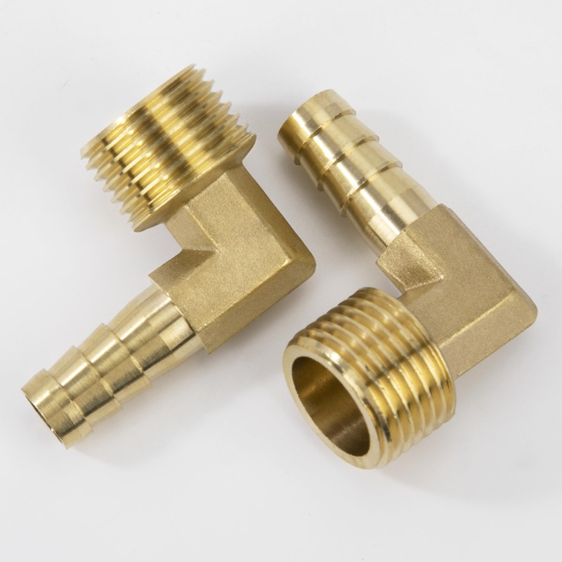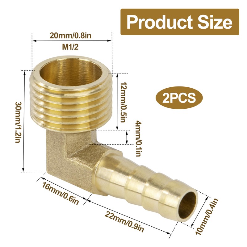 Brass Fitting Connector, Pack of 2 90 Degree 10 mm Barb x 1/2 Inch Male Thread Brass Elbow Coupling Pipe Adapter Connector for Angle Pipe Connector