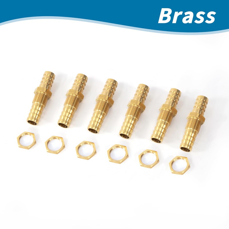 Brass Hose Connection Adapter, Pack of 6 10 mm Hose Nozzle Bulkhead Fitting Coupling, Brass Fitting Connection for Water, Air, Fuel, Connection