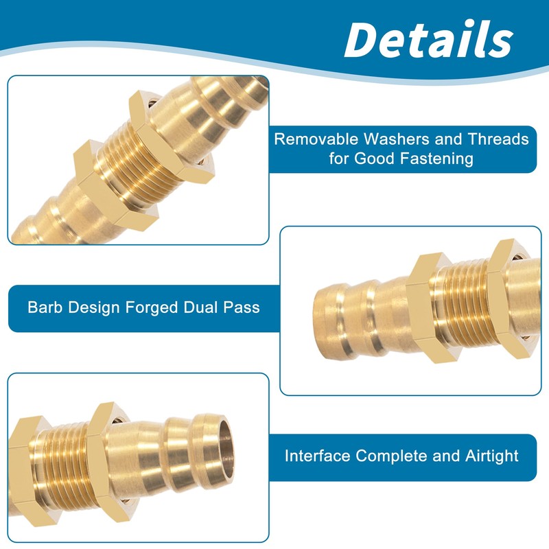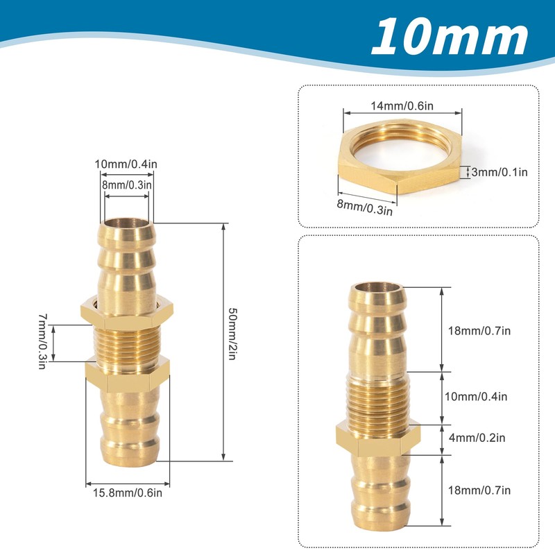 - Hexagonal bulkhead design: this bulkhead fitting contains a thickened hexagonal structure at both ends and ensure a secure and stable connection between hoses of different diameters. Choose the right barb diameter based on your hose size.