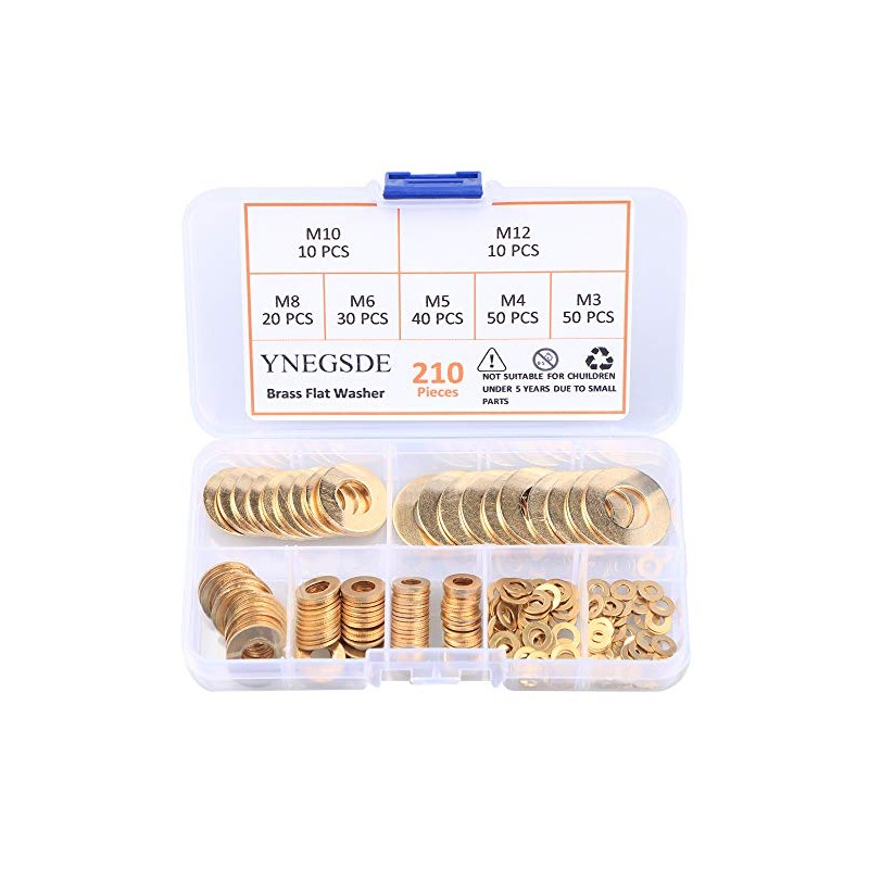 - 【Packed】: 210 Piece brass washer assortment, All of parts will be packed in a sturdy and transparent plastic box, can be use for a storage box