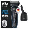 Braun Series 5 Elektrorasierer für Herren, Nass- und Trockenrasur, Turbo und Standard Modus, Wasserdichter Folienrasierer, Made in Germany, Mit Clean & Charge Reinigungsstation, 52-B7000cc, Blau