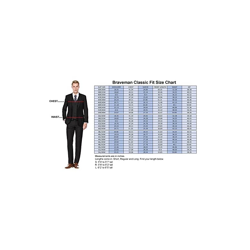 Braveman Men's Two Piece Classic Regular Fit Suits Jacket and Pant 2 Piece Se...