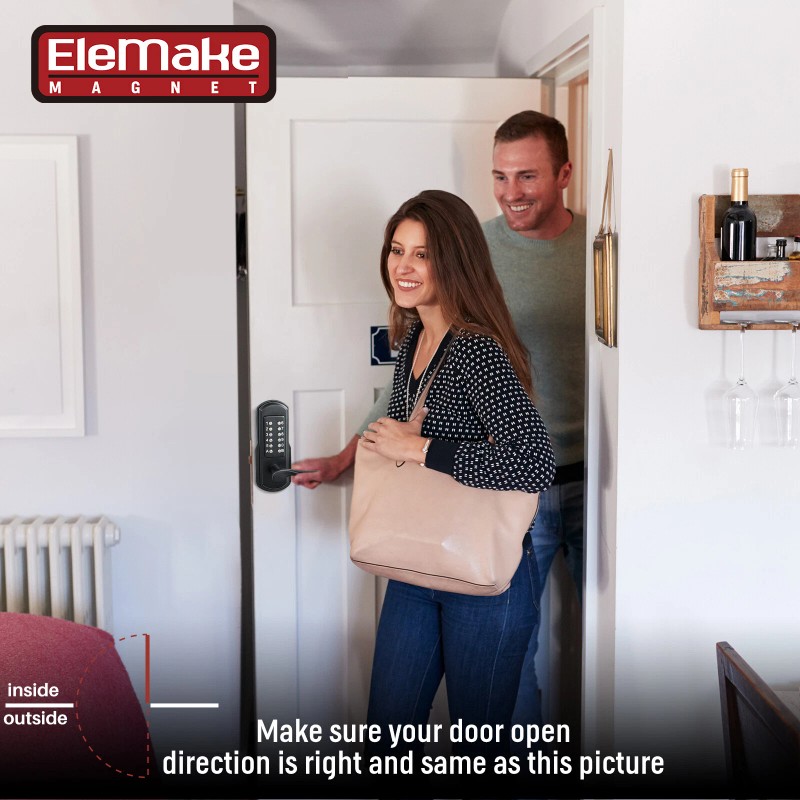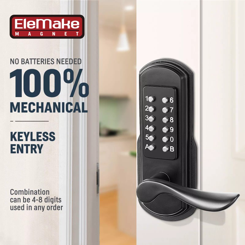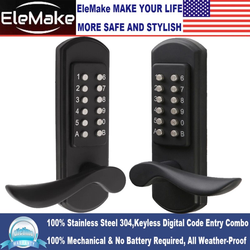 Elemake Keyless Door Lock with Keypad, Right Handed Mechanical Door Lock, Security Combination Digital Locks Stainless Steel 304 - NOT a Deadbolt, Need to Drilling Additional Holes