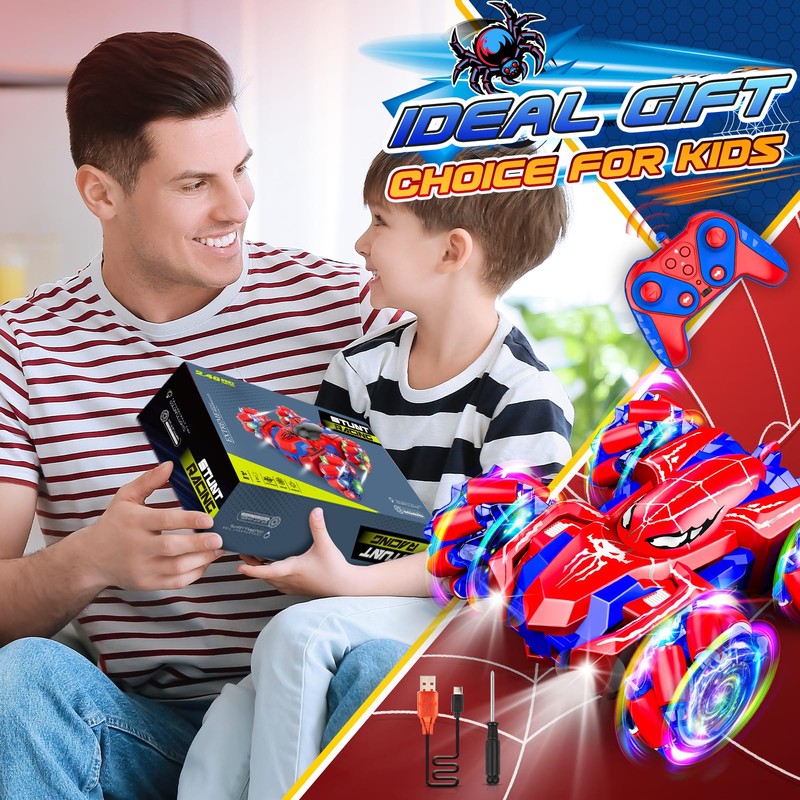 - 【Surprise Gifts for Kids】This remote control car is fun and easy to play, comes with an exquisite packaging box, and is very suitable as a birthday gift, Halloween gift, Christmas gift, Easter gift, etc. If you have any questions about the double-sided spider remote control car, please contact us first, we will sincerely provide you with the best service.