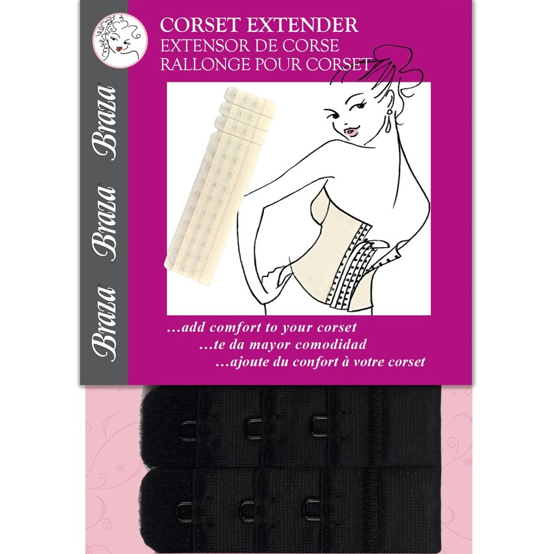 (ブラザ) Braza ビスチェ、ウエストニッパー用拡張フック コルセット エクステンダー 1枚 (ブラック)