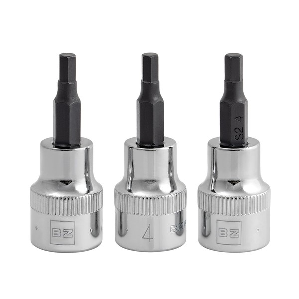BRAZEN 4mm Hex Bit Socket/Allen Driver Three Pack (3/8" Drive, Short)