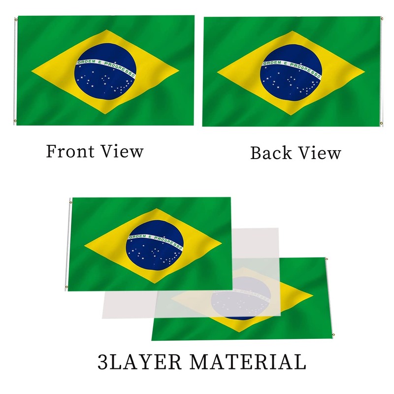 - ✔[ Double Sided Brazil Flag ] -- The 3x5 Brazil flag has 3-layer 200D polyester ,The front view and the back view see the same rather than mirror image. There is also a layer in the middle of the flag, can extend the use time of the flag