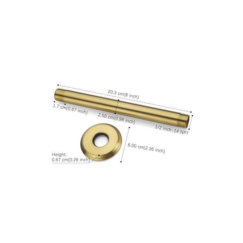 | Componentes incluidos | 1 brazo de ducha de bronce champán, 1 brida y junta a prueba de óxido |
