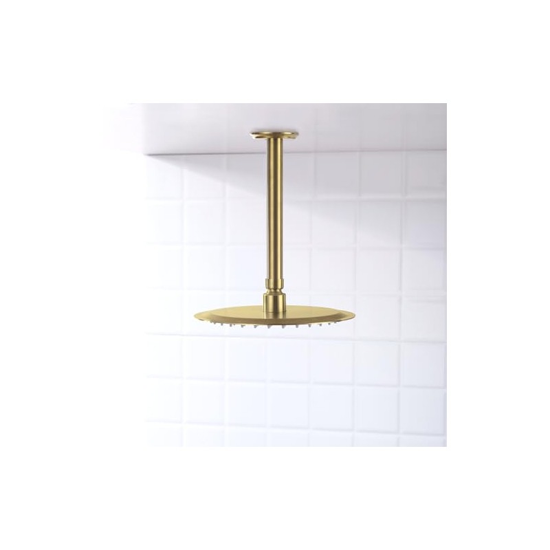 - Alta aplicabilidad: brazo de ducha montado en el techo Acabado de bronce champán, combina con sus accesorios de ducha de baño de bronce champán.