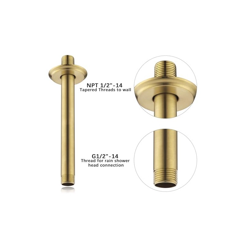 - Estándares de EE. UU.: El brazo de ducha recto cumple con las normas de EE. UU., NPT 1/2 "-14 hilos cónicos a la pared, rosca G1/2"-14 para conexión de cabezal de ducha de lluvia.