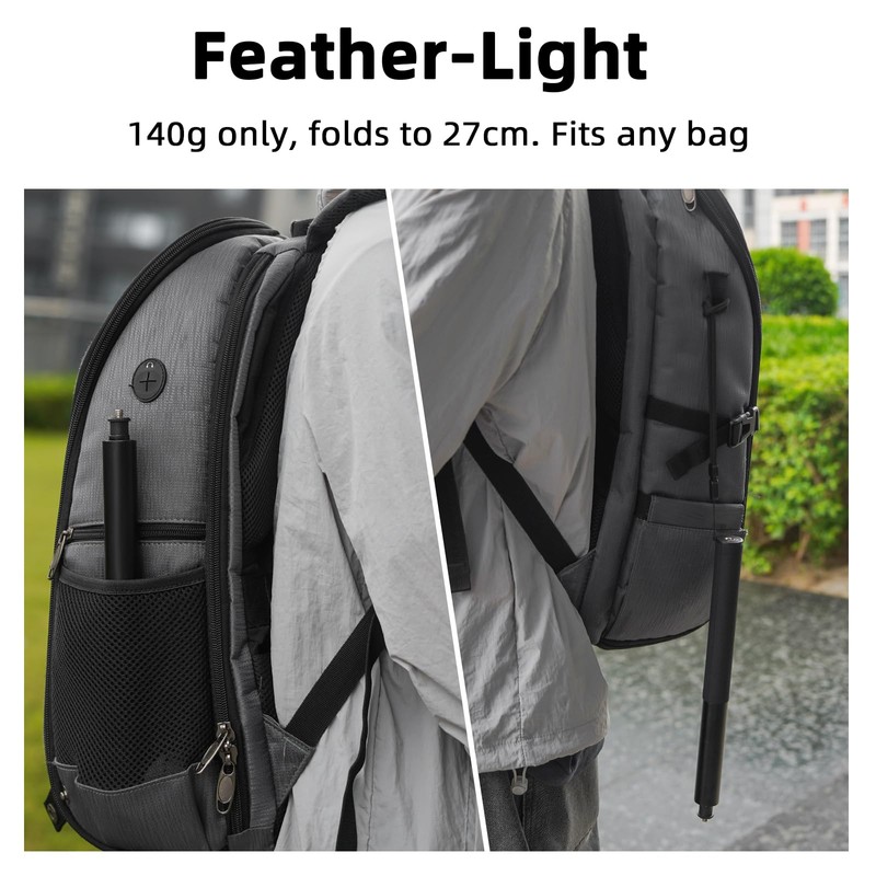 Stretch to 135cm (53") for sweeping panoramas or collapse to 27.6cm (11") – ultra-light at 140g, it slips into backpacks like a dream. Hike mountains, dive oceans, or chase sunsets – your invisible selfie stick is always adventure-ready!