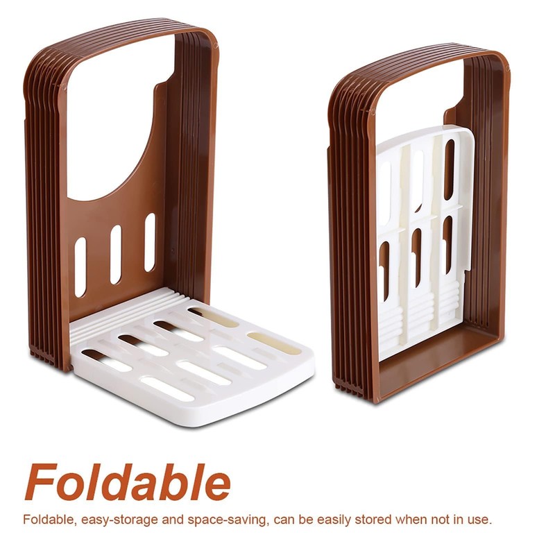 • 🍞【Easy to storage】 Bread slicer for homemade bread,plastic bread slicer flat which designed to fold easily for compact storage makes it easy to store even in crowded kitchen drawers and cabinet.When youÂŽve finished cutting bread, you can easily clean and pack it flat to fit in your drawer.