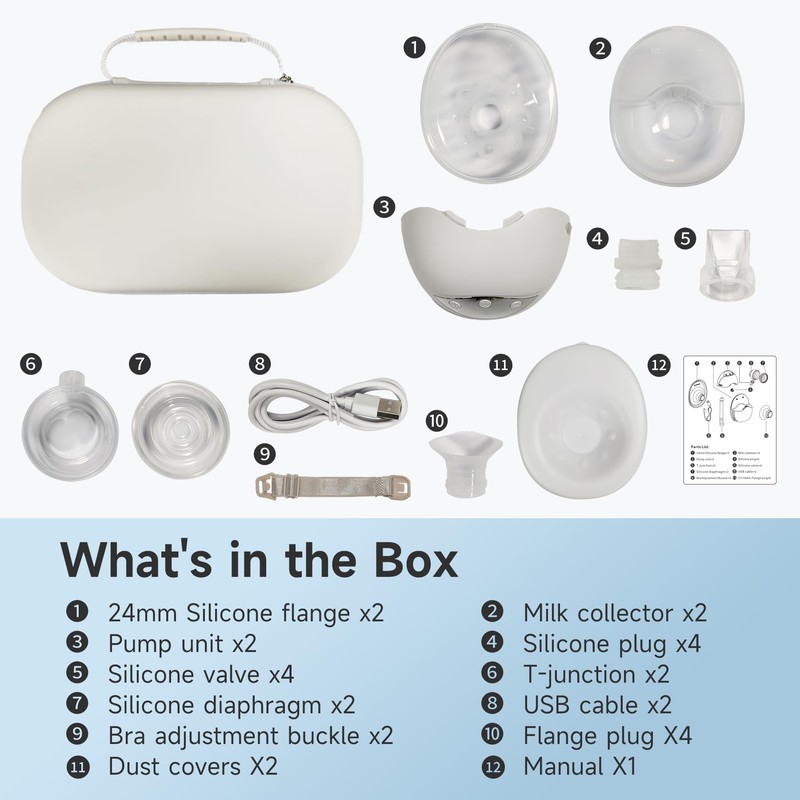 Breast Pump Hands Free Wearable Portable Electric Breast Pump with 4 Modes & 12 Levels, Rechargeable & Smart Display Double Breastfeeding Pump, 24/21/19mm Flange, 2 Pack