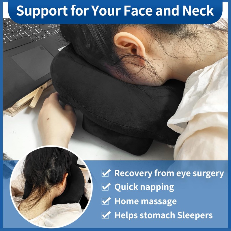 - ERGONOMIC FACE DOWN PILLOW: Do you need a face down pillow with great comfort and support? The Sajeure face down pillow is ergonomically designed with soft fabric and three firm supports to ensure comfort, support of the face down pillow. Great for home massage It can keep your face and eyes stress-free and relaxed.