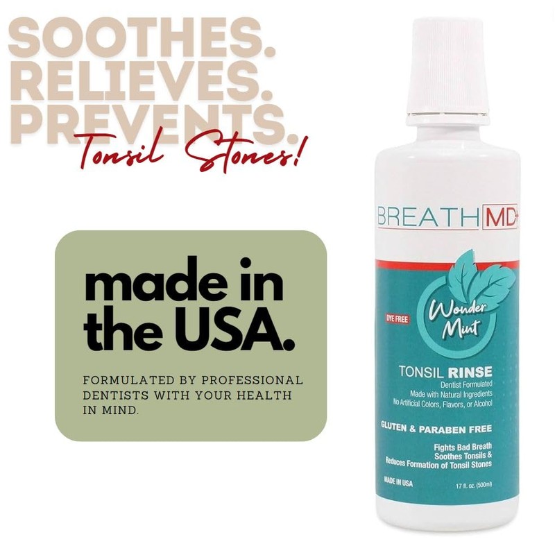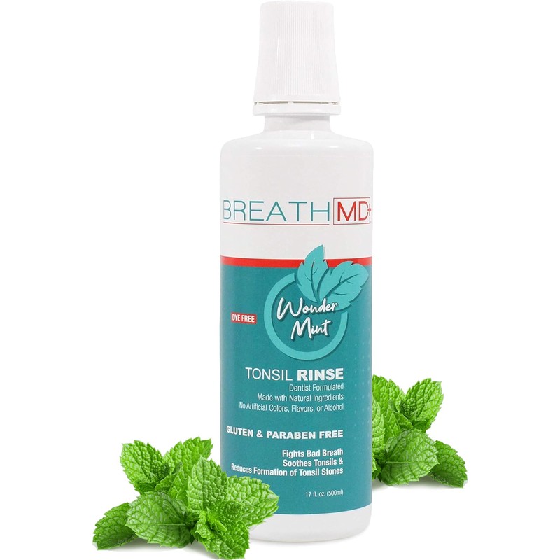BreathMD - Natural Tonsil Stone Remover Rinse Mouthwash & Bad Breath Treatment - Dentist Formulated - Alcohol Free, Dye Free, Gluten Free - Wonder Mint Flavor - Made in USA