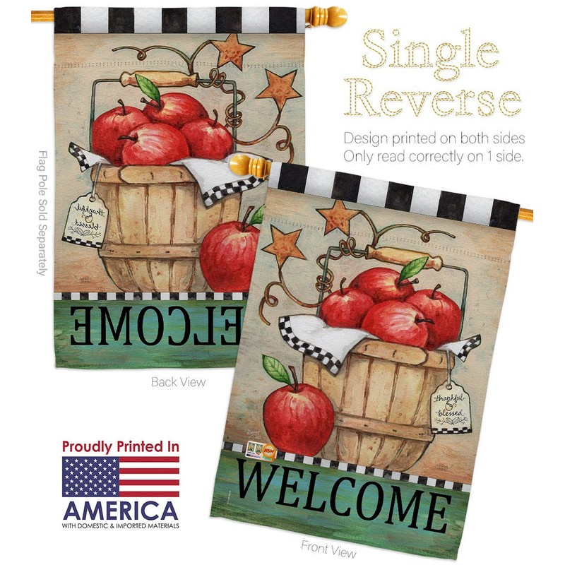 Breeze Decor Fruits Apple Basket House Flag Dowel Set Food Pineapple Strawberry Watermelon Tropical Aloha Summer Small Decorative Gift Yard Banner Made in USA 28 X 40