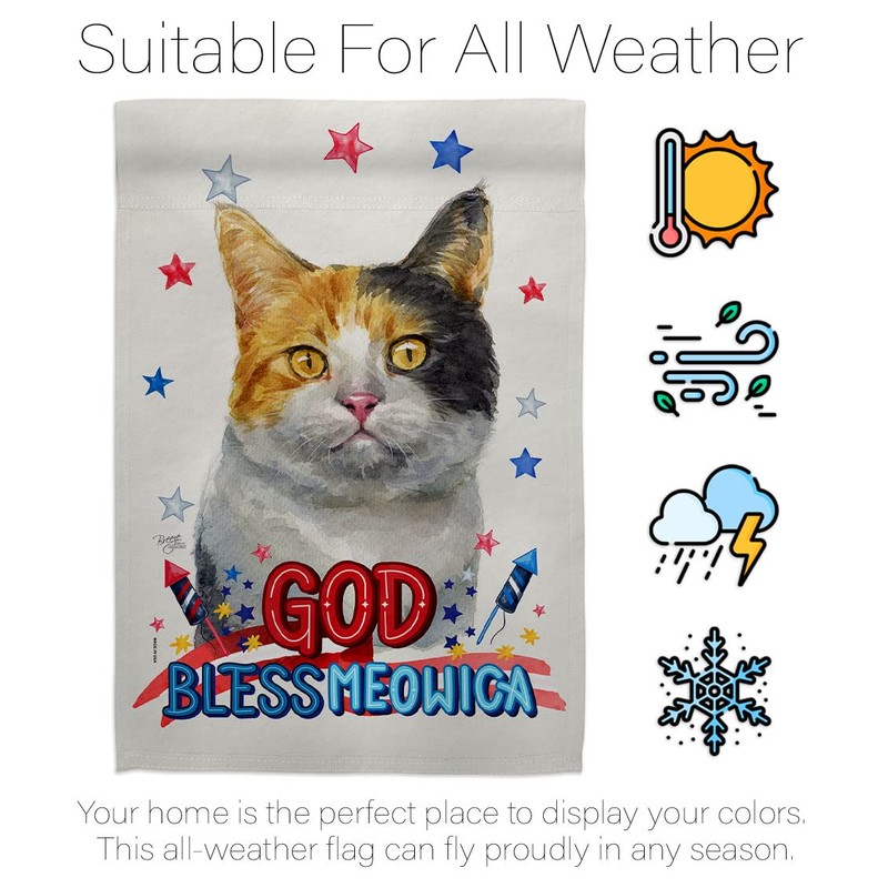 Breeze Decor Patriotic Dilute Calico Garden Flag Set Mailbox Hanger Cat Kitten Meow Spoiled Paw Fur Pet Nature Farm Animal Creature House Banner Small Yard Gift Double-Sided, Made in USA