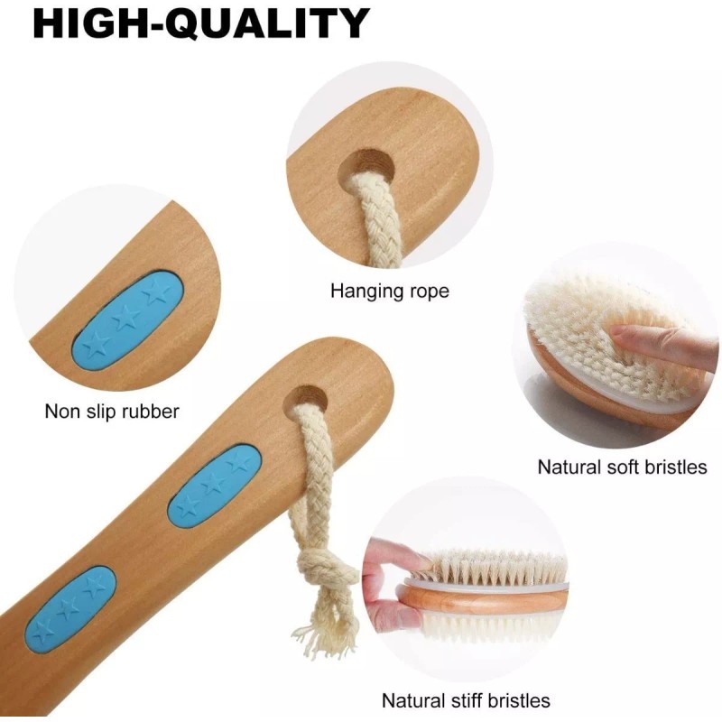 -El cepillo exfoliante para ducha cuenta con doble cara ideal para un cepillado en seco o húmedo, la doble cara proporciona dos lados de opciones de dureza y limpia a fondo todo el cuerpo.
