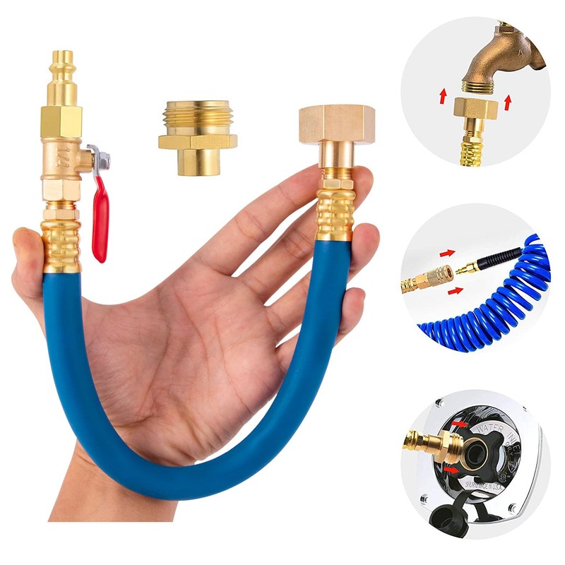 - ★Function:Flexible hose allows the adapter to access tight spaces and minimizes stress on pipes and fittings. Easily connects to air compressor and garden faucet to winterize lawn sprinkler systems, faucets, and plumbing to prevent damage due to freezing.
