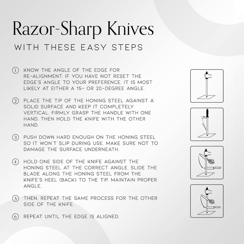 Caution: Do not use our honing steels on scalloped or serrated blades.