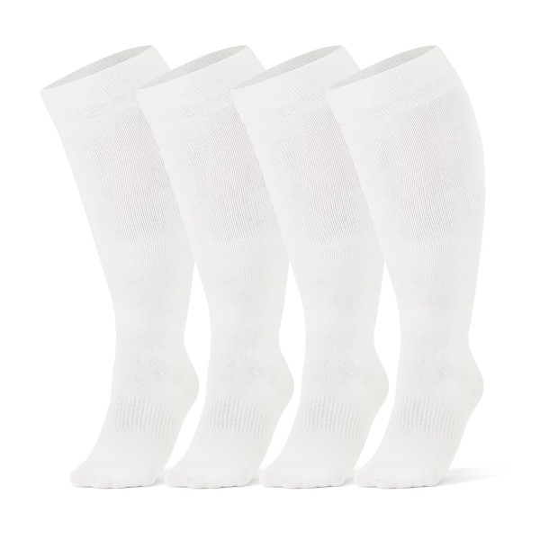 Breslatte Wide Calf Compression Socks for Women Men Plus Size 10-14 mmHg Circulation Knee High Support Stockings 4Pair-05 White/White/White/White X-Large-XX-Large