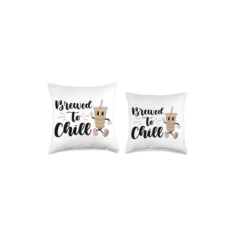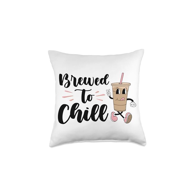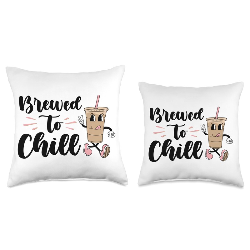Brewed to Chill Cold Brew Coffee Quote Iced Coffee Latte Throw Pillow