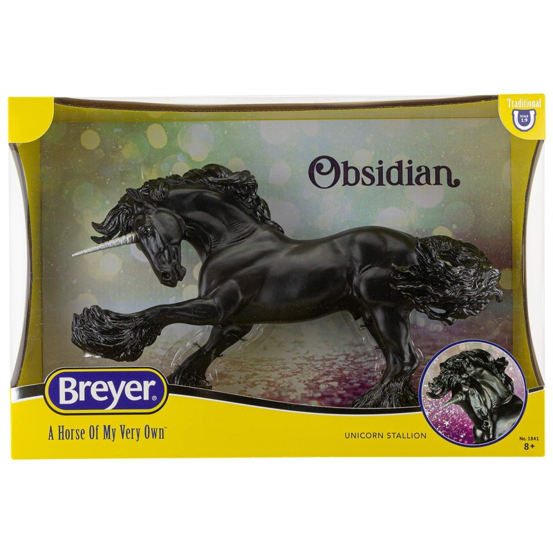 - BREYER TRADITIONAL SERIES | OBSIDIAN - UNICORN STALLION: The unicorn remains one of the most beloved mythical creatures in the world. Stories from many different cultures tell of the unicorn – and their horn – holding magical powers. With powers as desirable as these, it’s no surprise that unicorns have chosen to remain hidden.