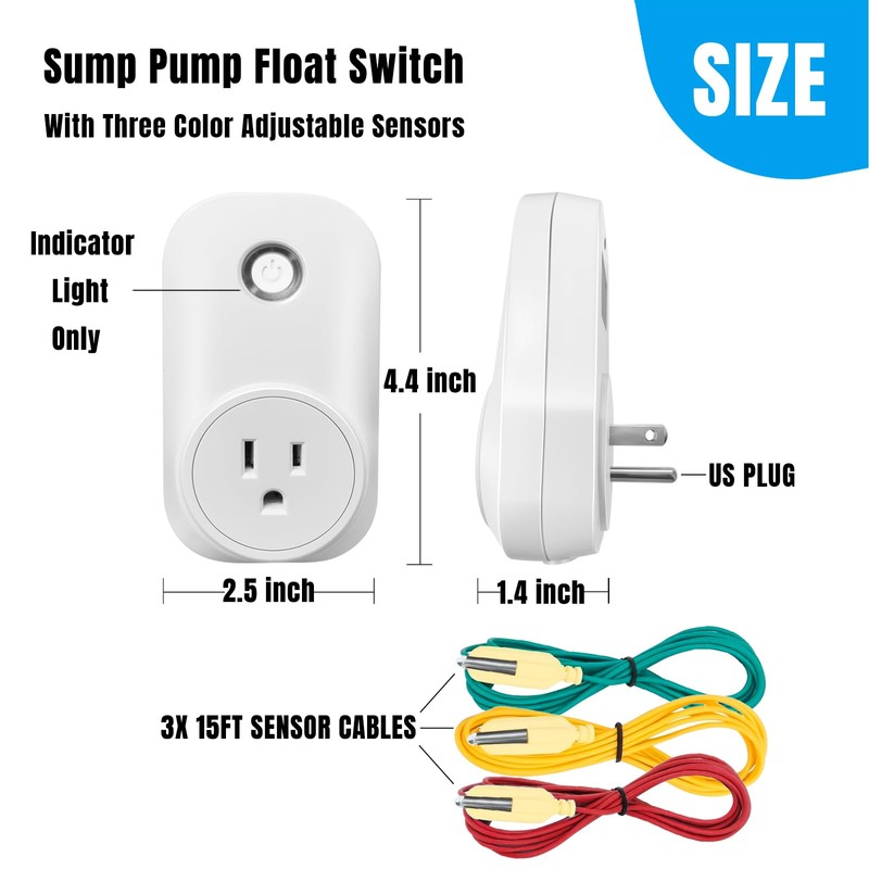 - Color-Coded Universal Compatibility: Featuring three sensors with different colored wires for easy identification, the Brezoo controller works seamlessly with all sump and utility pump systems. Its straightforward installation makes it a perfect replacement for existing float switches, eliminating compatibility issues.Especially in narrow or congested pits