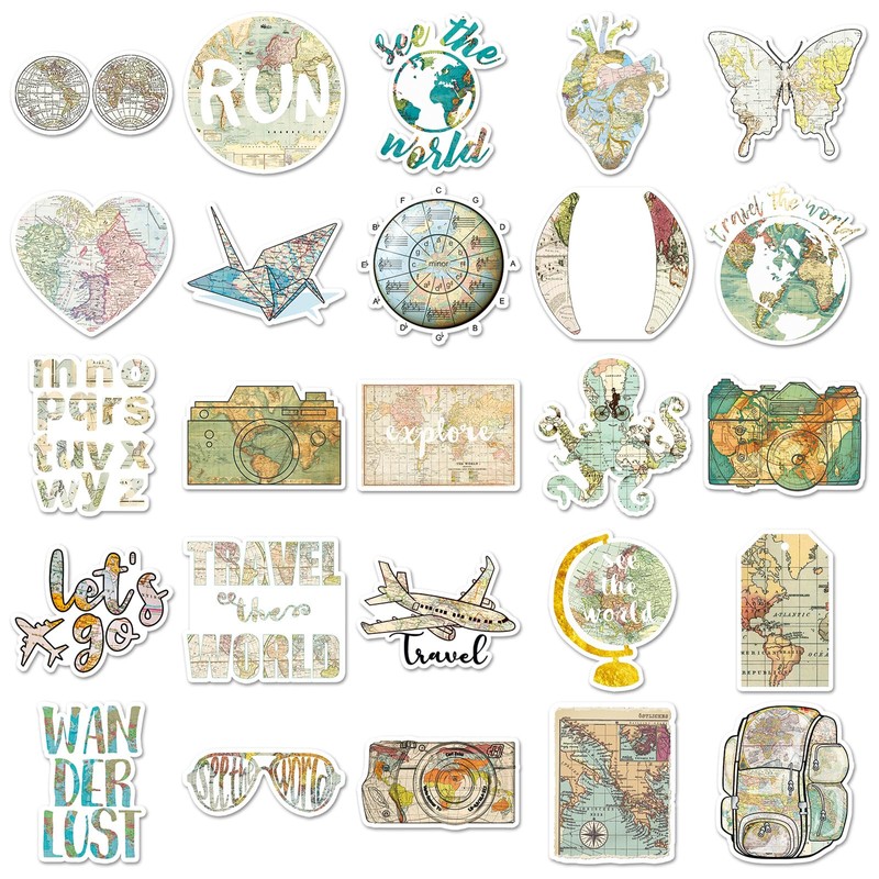 Bric Dodo Pack of 50 Card Stickers Car Laptop Phone Guitar Skateboard Motorcycle Bicycle Retro Map Stickers Set Vinyl Waterproof Aesthetic Stickers for Teenagers Children Adults