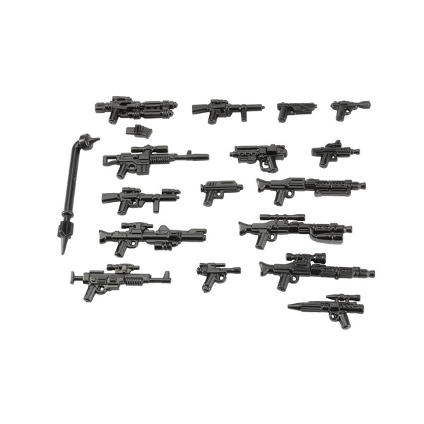 - This set contains 17 weapons: E-22 with removable magazine - Relby V10 1S - Westar-35 - DT-12 - A295 - E-5 - SE-44C - Relby C10 2S - DC-17 - DLT-19 - DLT-19D - DC-15LE - DLT-19X - Gaffi Stick - A-280C - Shocktrooper Pistol - DH-17
