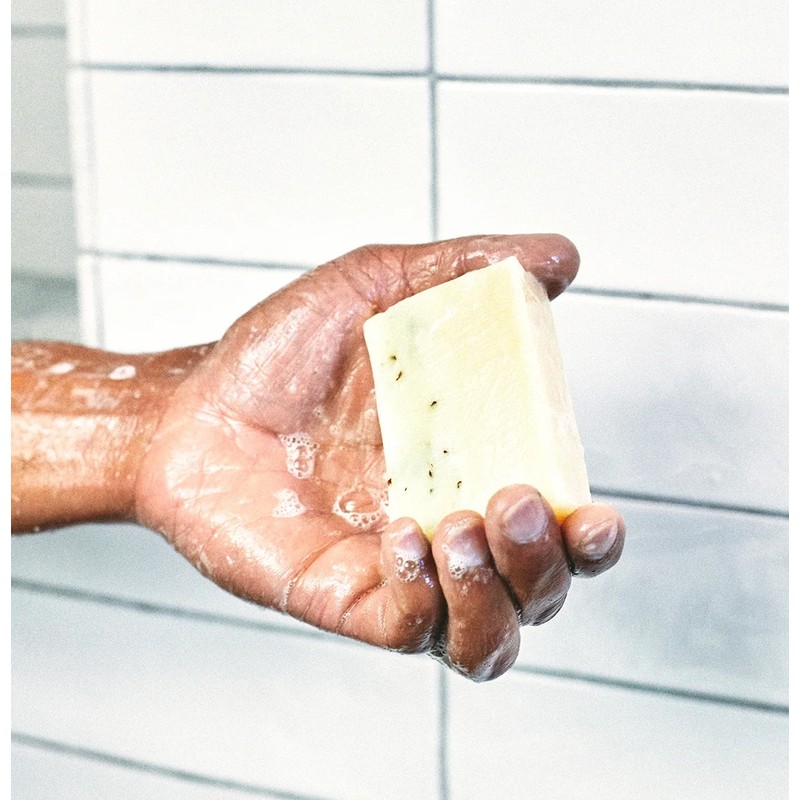 - Rub the Brickell Men's Soap Scrub Bar between your hands or directly onto your skin to create a rich lather.