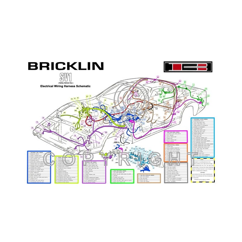 BRICKLIN SV1 CAR ELECTRICAL SYSTEM CUTAWAY 24" X 36" POSTER