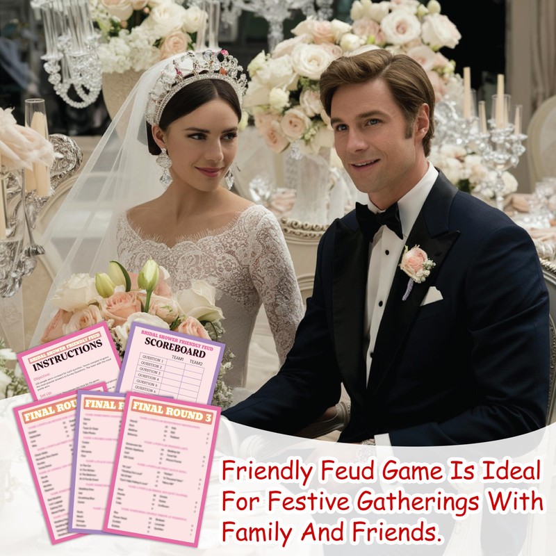 Bridal Shower Friendly Feud Game, Fun Bridal Shower Game Card for Adults, Friendly Feud Quiz for Wedding Shower Engagement Anniversary, Feud Trivia Games Bridal Shower Favor Supplies, 01
