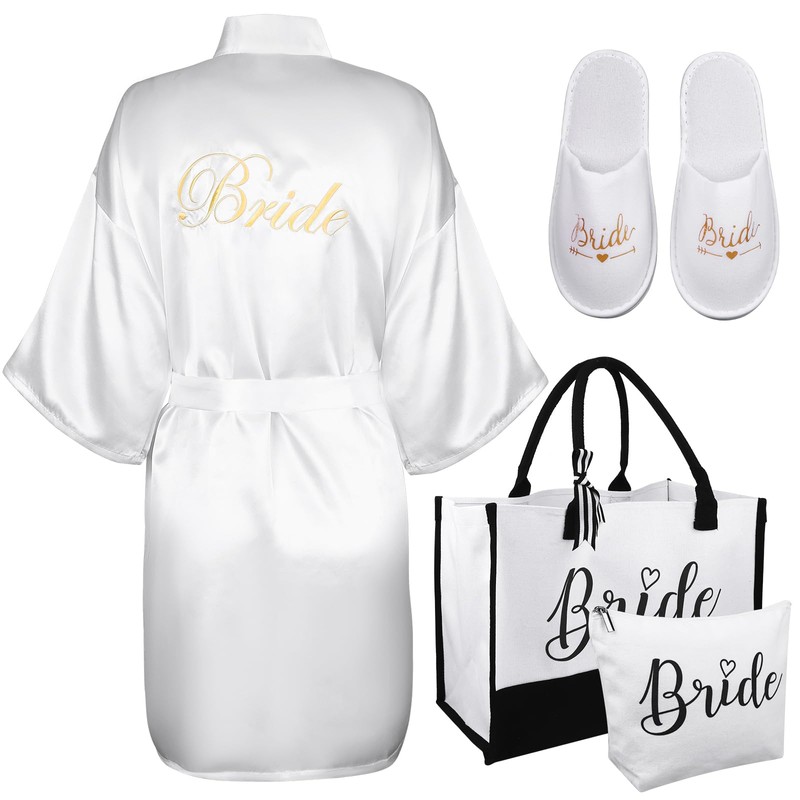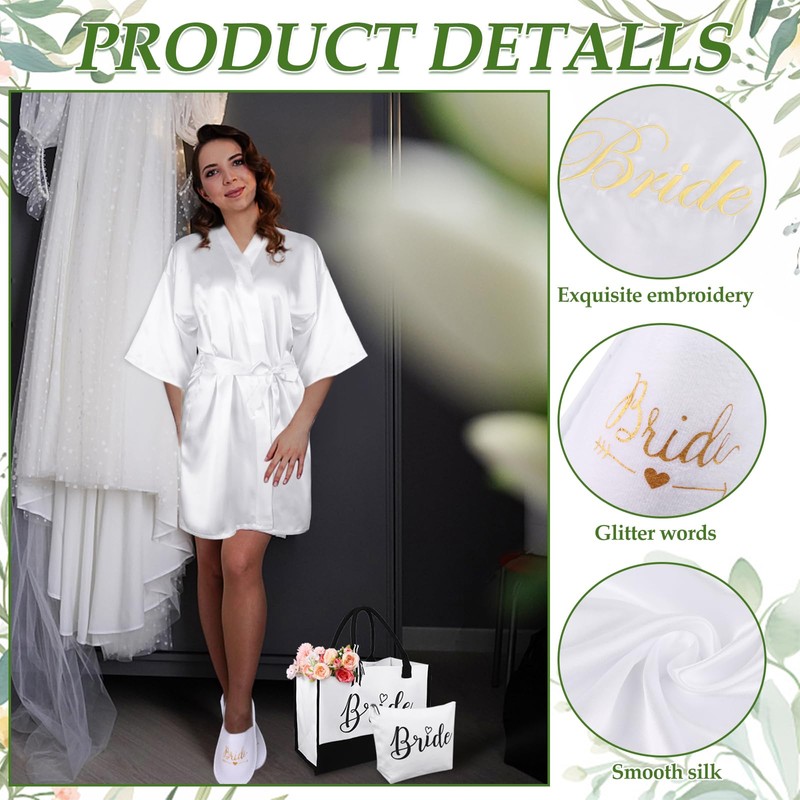 - 【What you get】you will receive 1 piece of bridal robe and 1 pair of bridal slippers,1 piece tote bag and 1 piece makeup bag,And our bridal party robes and slippers look elegant and charming, after wearing them can better attract people's attention
