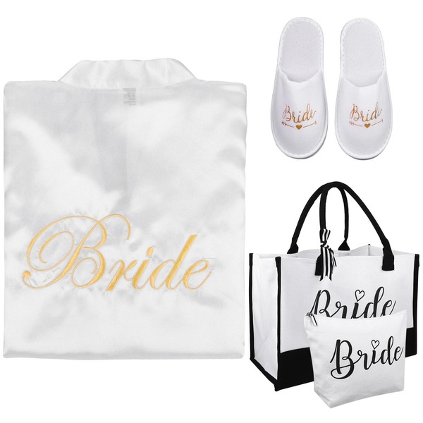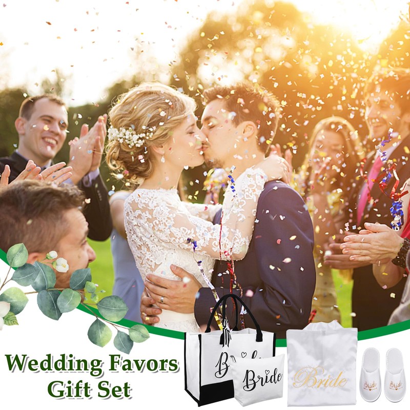 Bridesmaid Party Robes Set,Bride Slippers White Wedding Robes Bridal Bridesmaid Canvas Tote Bag Makeup Bag Gifts Cosmetic Pouch for Wedding Bridal Shower Women Bachelorette Fiancee Married Gifts