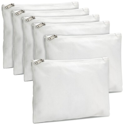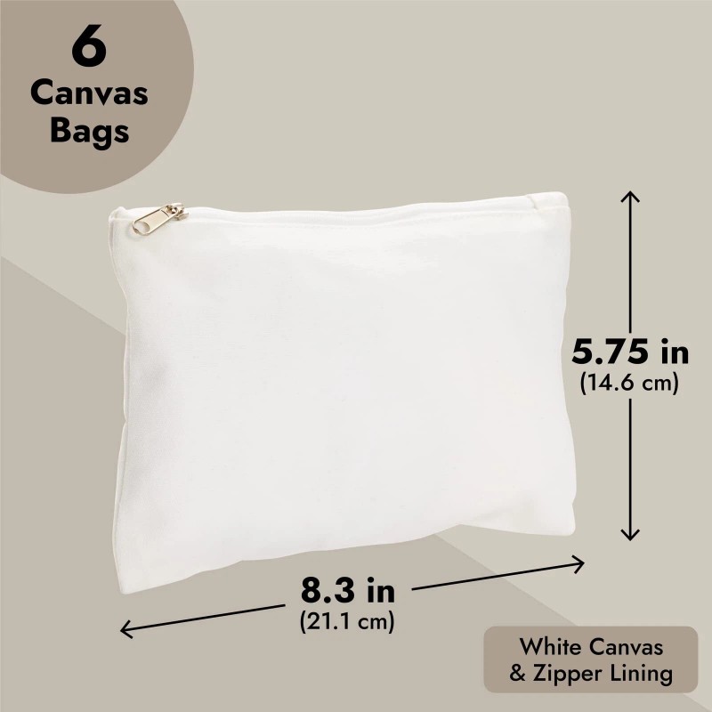 Bright Creations 6-Pack White Makeup Bag Set with Zipper - 8x6 Customizable Cotton Canvas Pouches for DIY Arts and Crafts, Items to Tie-Dye for Cosmetic Items, Stationary, Party Favors