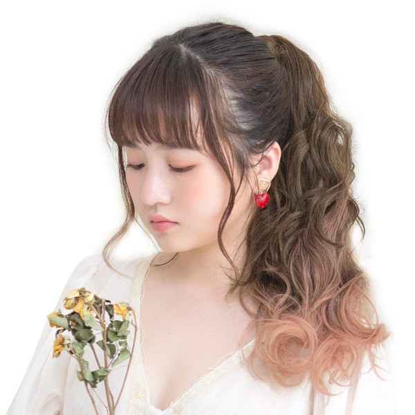 Bright Lara cy73xx-S-PK Wig, Gradient Ponytail, Long, Two-Tone Wave, One Touch Extensions