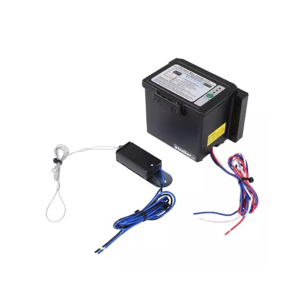 Complete top load trailer breakaway kit. Check the charge, charge the battery while connected and bring your trailer to a safe stop if it separates from your vehicle.