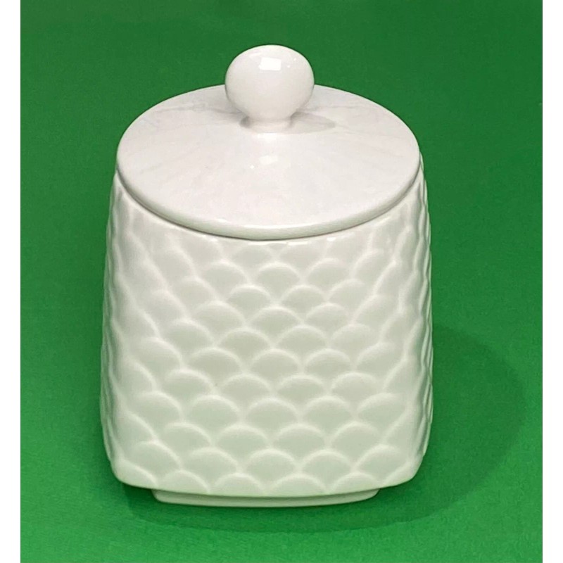 Bright White Fine Bone China Atlantis Embossed Scalloped Vanity Trinket Dish