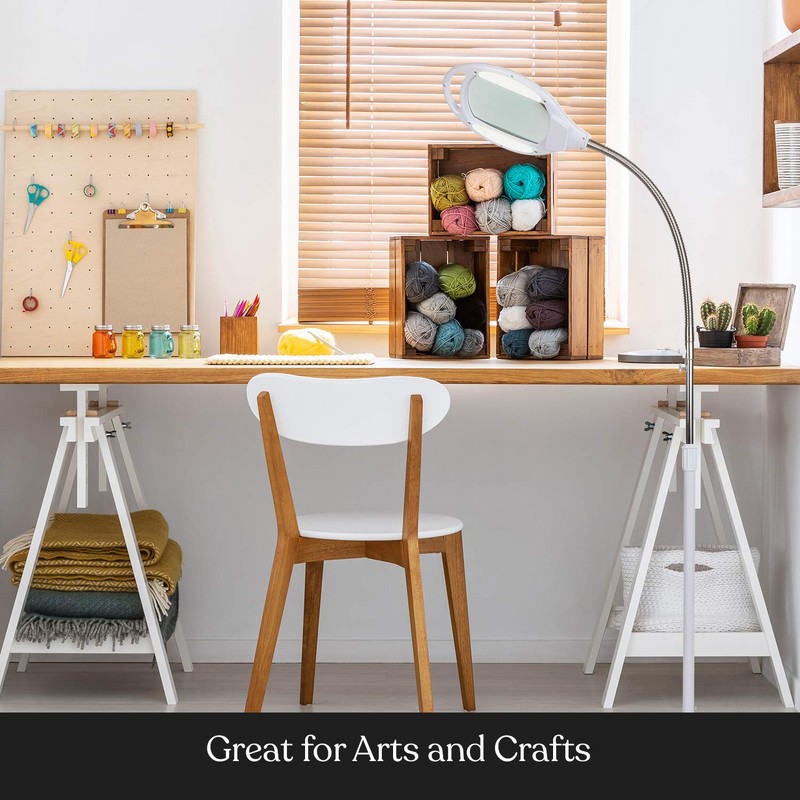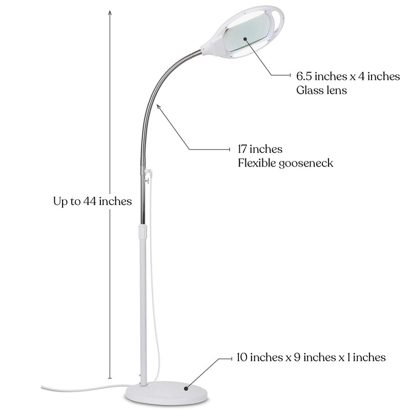 Brightech Brightech LightView Pro LED Magnifying Floor Lamp - Daylight Bright Full Spectrum Magnifier Lighted Glass Lens - Height Adjustable Gooseneck Standing Light - for Reading Task Craft Lighting - White