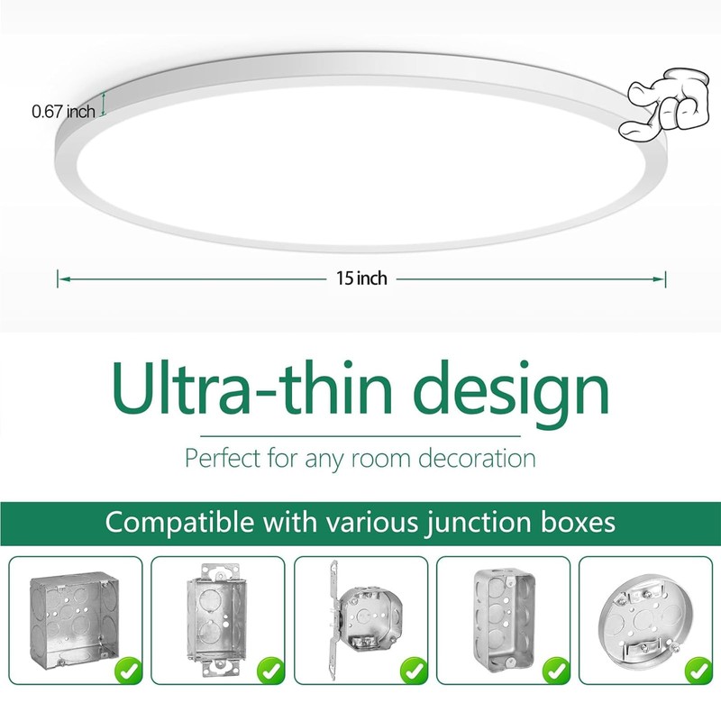 - Unprecedented Ultra-thin Ceiling Lights - We've used cutting-edge raw materials renowned for their flexibility and strength to create this incredibly slim round led light, measuring just 0.67 inches thick. This design surpasses the thickness limitations of traditional lights for ceiling. Regardless of your ceiling height, it seamlessly integrates into your home decor, adding a modern and stylish allure