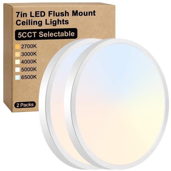 Brightever 7 Inch Flush Mount Ceiling Light, 12W 1200LM LED Ceiling Light Fixtures, 2700K/3000K/4000K/5000K/6500K Selectable, 0.67 Inch Ultra Thin Flat Ceiling Lights for Bedroom Closet, 2 Packs