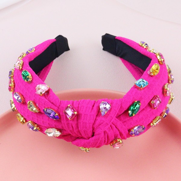 Brihasory Sparkle Rhinestone Knotted Headbands for Women and Girls Crystal Jeweled Headband Fashion Mardi Gras Accessories Party Prom Carnival Valentines Headwear Wide Headband Hair Hoop(Rose Red)