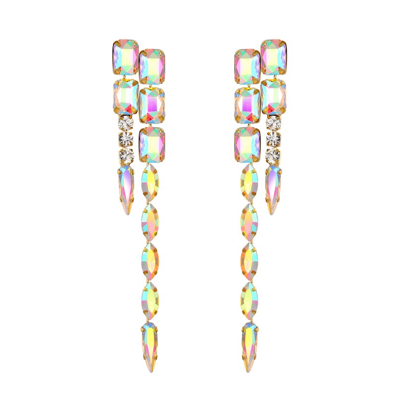 - Specifications & Size: Rhinestone Long Drop Dangle Earrings Size (Pierced):5.4*1 in. Total Weight:41.7g.