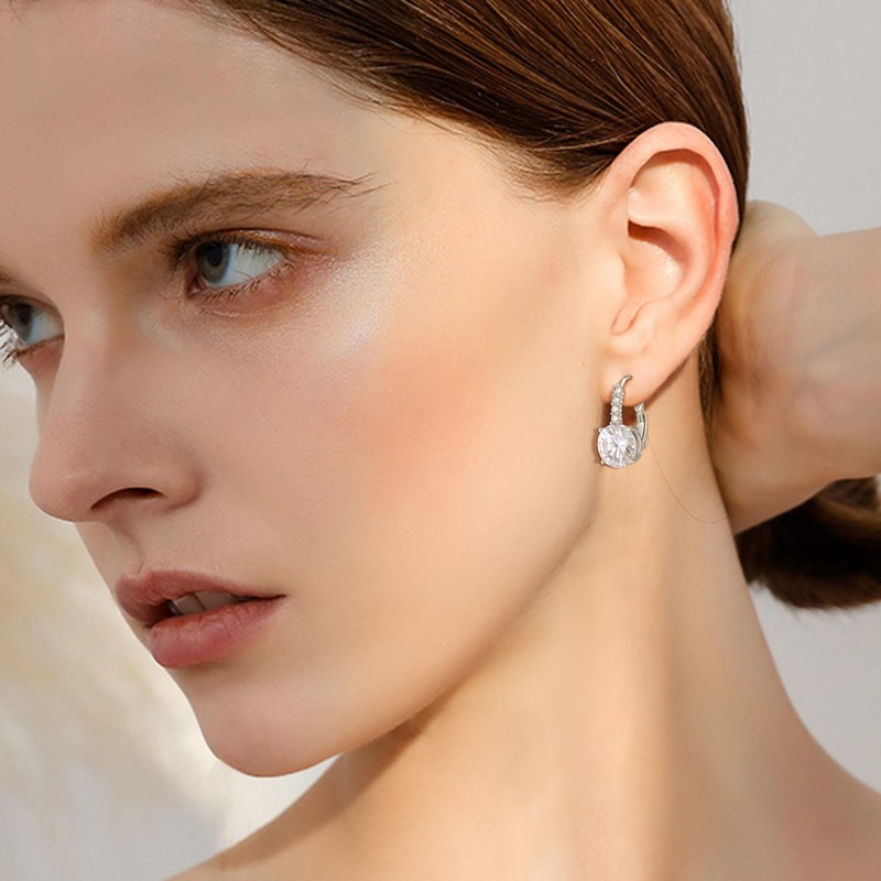 BriLove Round Cut Birthstone Drop Earring, Classic Cubic Zirconia Huggie Hoop Earrings for Women Hypoallergenic Jewellry Gift Valentines Day Clear Silver-Tone