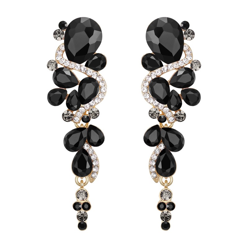 BriLove Women's Wedding Bridal Dangle Earrings Bohemian Boho Crystal Multiple Teardrop Chandelier Long Jewelry Black Gold-Tone